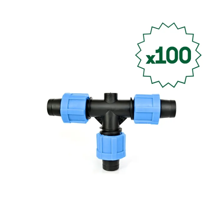 Conector Acople T para Cinta Riego Goteo x 100 Unid.