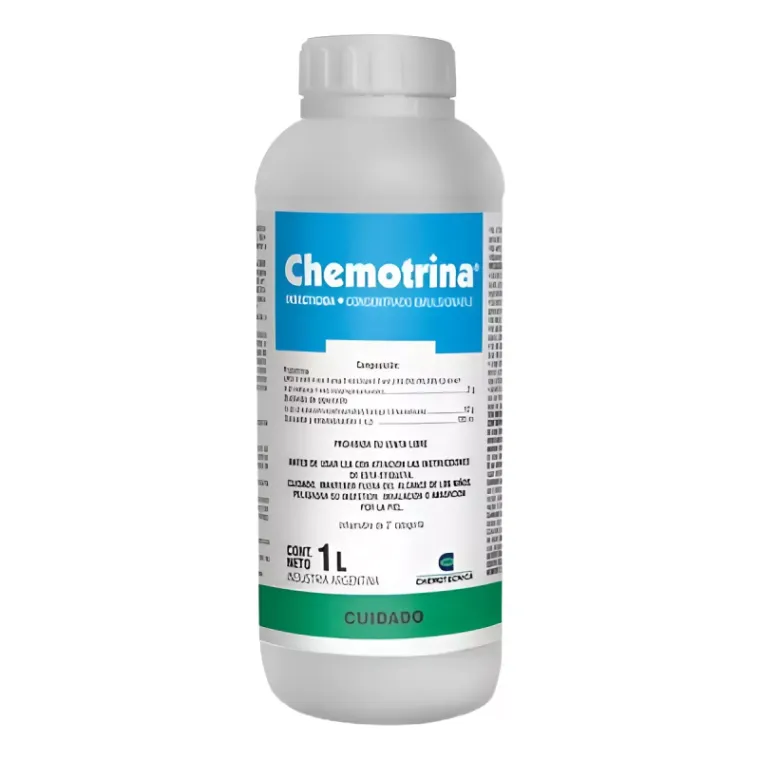 CHEMOTRINA® es un insecticida piretroide, que posee una toxicidad moderada en mamíferos. Su acción insecticida sobresale por un excelente volteo unido a un insuperable poder de desalojo y una residualidad extremadamente corta (dependiente de la dosis y de la superficie tratada).